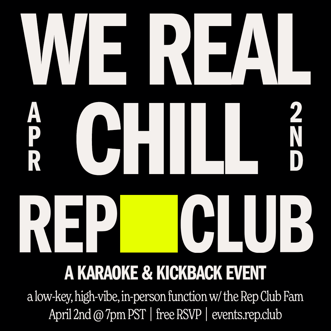 Nothing fancy, but we've been having these kickbacks quietly with our team and thought it would be fun to invite the rest of our Rep Club fam (that's you)!