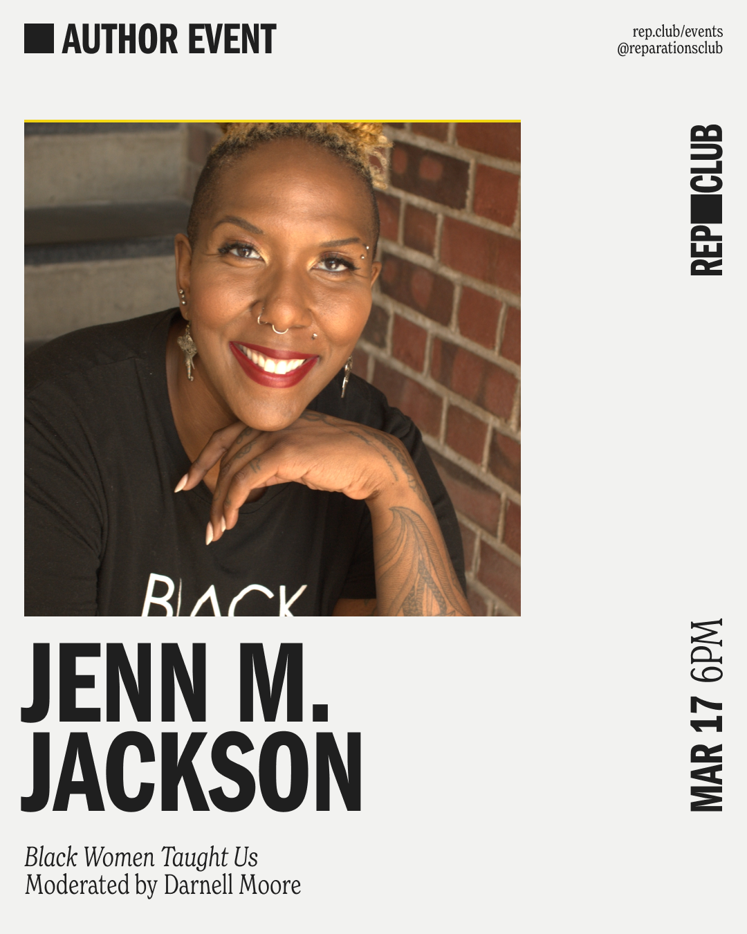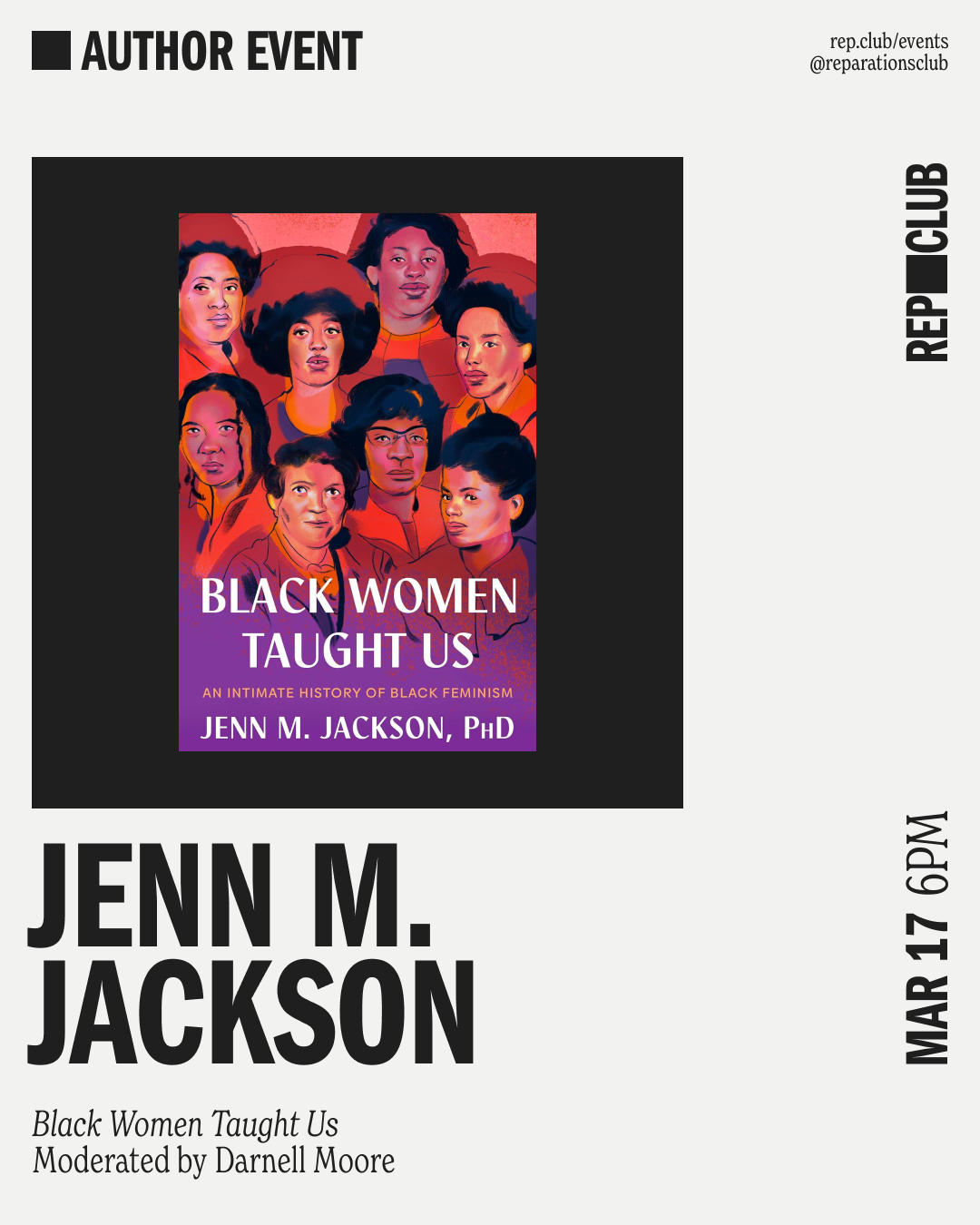 WHO & WHAT: Join us for an IRL EVENT with author, Jenn M. Jackson as we discuss their debut title, Black Women Taught Us. Jenn will be in conversation with fellow author, educator, and thought leader, Darnell L. Moore.