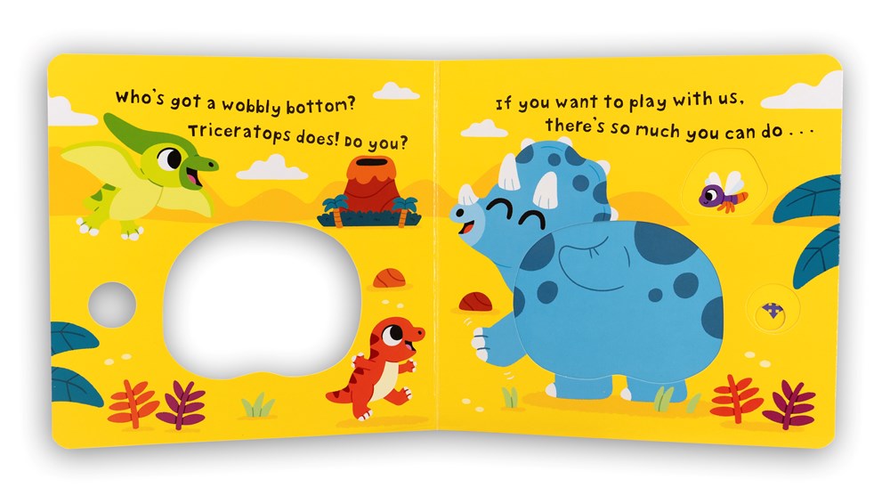 Can you join in with triceratops and their dinosaur friends as they do the Wobbly Bottom dance? The bouncy text and bright art will draw toddlers to this funny novelty books that features a different element to move on every page. But the most fun of all is wiggling the bottoms around in this silly and unique board book series.