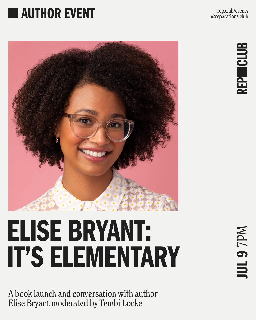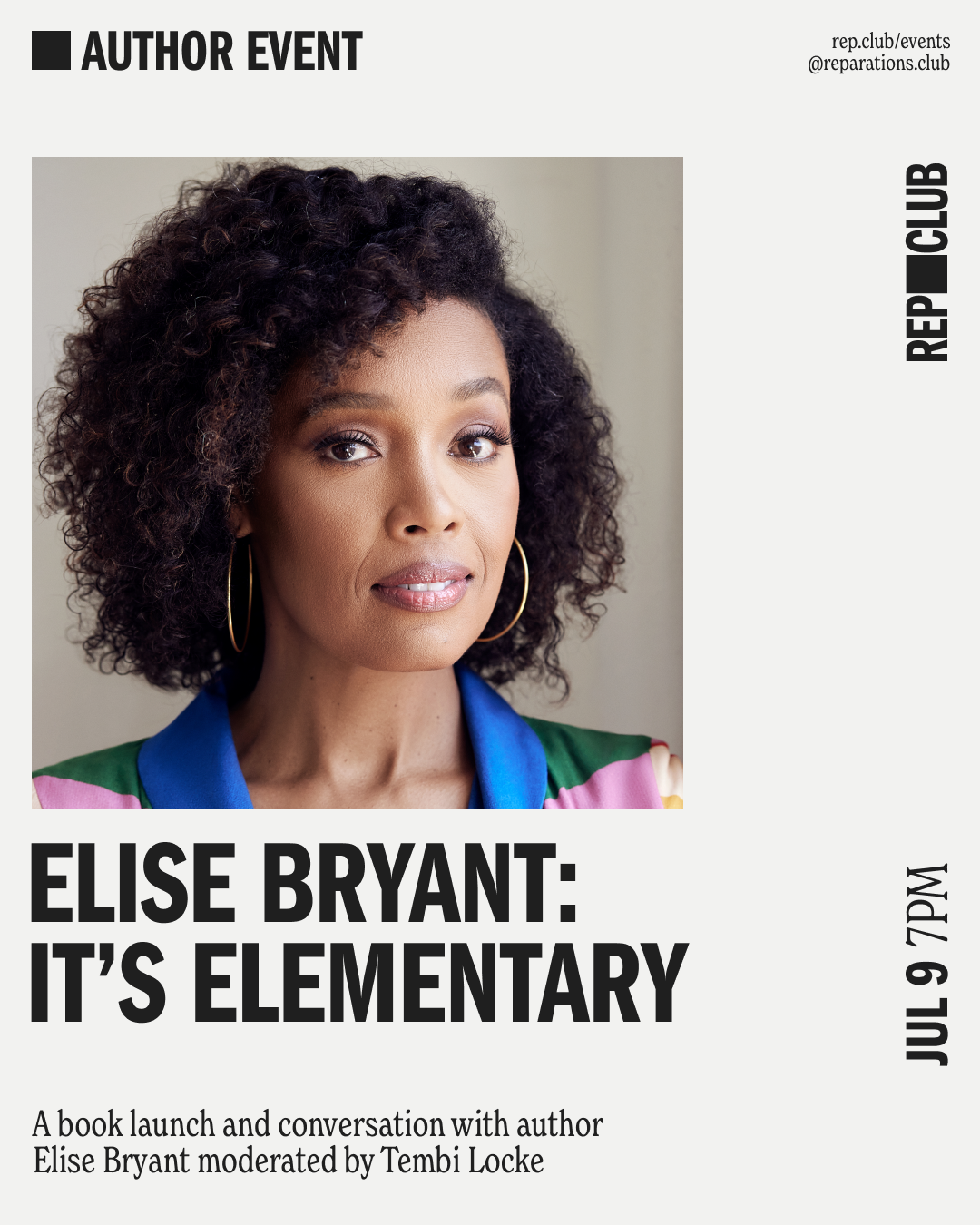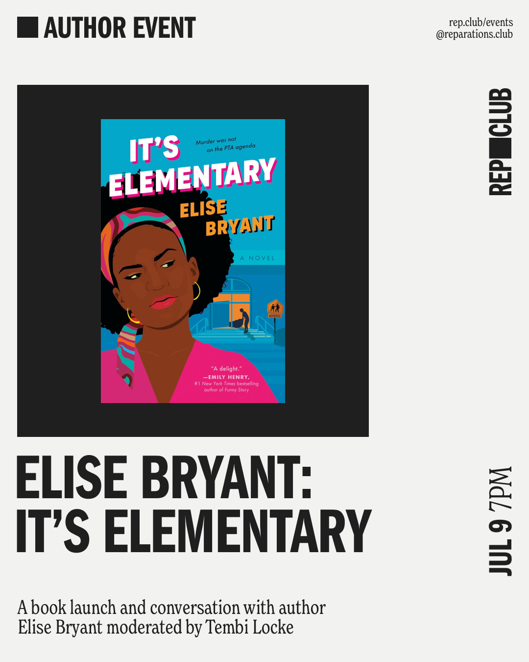 WHO & WHAT: Join us for an IRL EVENT with author and YA romance rockstar, Elise Bryant, as we discuss her debut adult mystery novel, It's Elementary. Elise will be joined in conversation with NY Times best-selling author, actor, screenwriter, and TV producer, Tembi Locke.