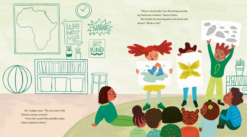 When Maya’s class is asked to draw something inspired by nature, she gets right to work. There’s nothing Maya loves to do more than draw! So she spends all evening drawing, painting, and gluing. She even wakes up early the next day to add the finishing touches. In class, the students take turns presenting their artwork. Tatiana shares her drawing of a puddle, Pedro shows his picture of a butterfly, and Ravi proudly displays his sketch of rocks. Excited to share her rainbow, Maya opens her drawing with a big “Ta-da!” But her classmates are confused. “I like your drawing, but rainbows don’t look like that,” says Ravi. Maya’s cheeks tingle and her palms start to sweat. How can Maya help her classmates understand her drawing? With encouragement from their teacher, Maya inspires her class to unleash their own creativity and bring everyone’s unique perspectives together to create a beautiful masterpiece.