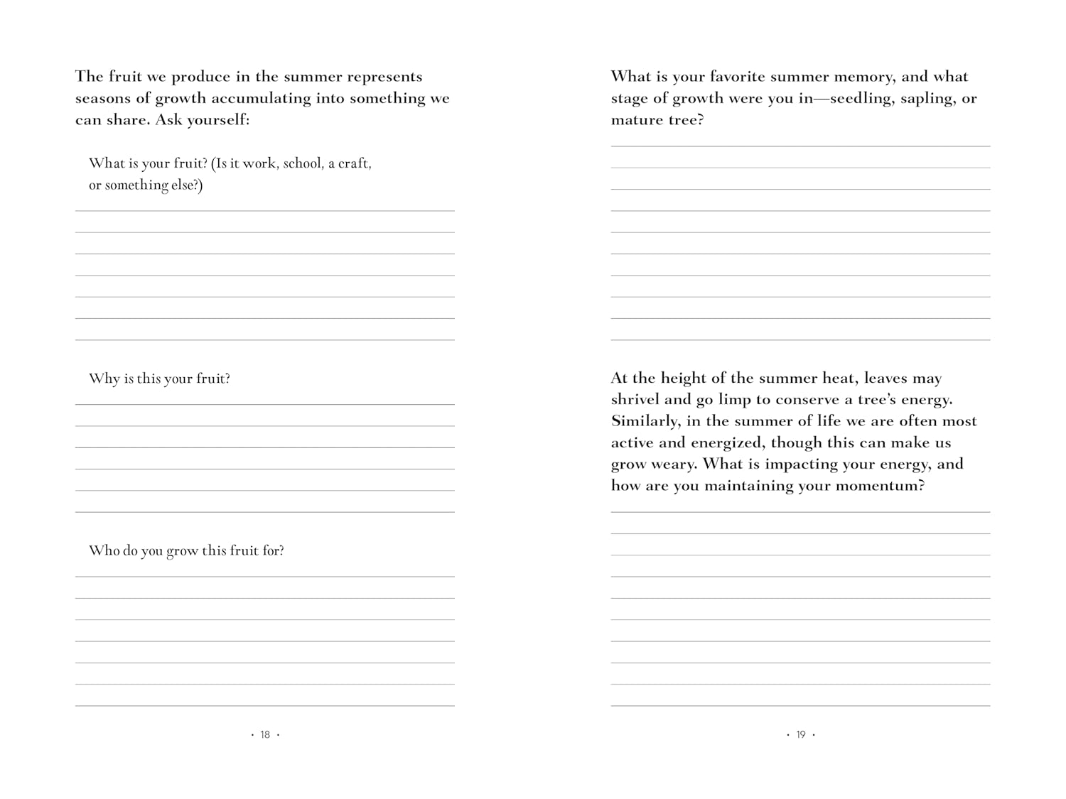 Like the rings of a tree marking every year of growth, our journal can become a log of lessons learned throughout the seasons of our lives. Featuring journal prompts, activities, breathing and mindfulness exercises, and bite-sized bits of knowledge to help us slow down, experiment with new wellness practices, Seasons of Growth can lead us to find inner clarity, harmony, and peace.