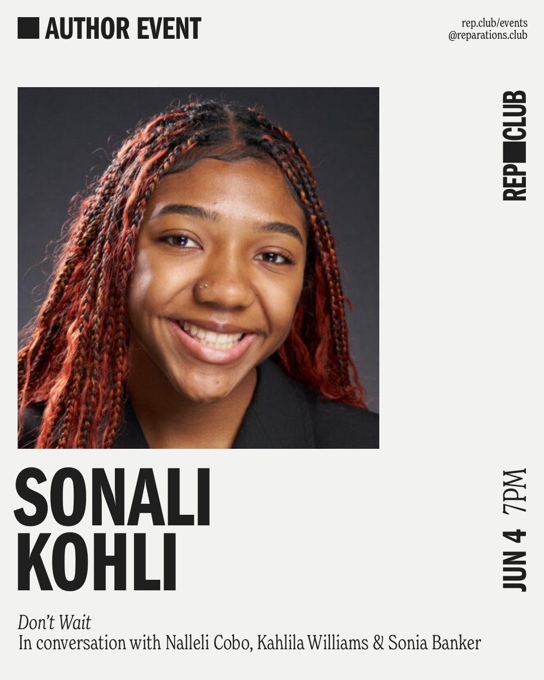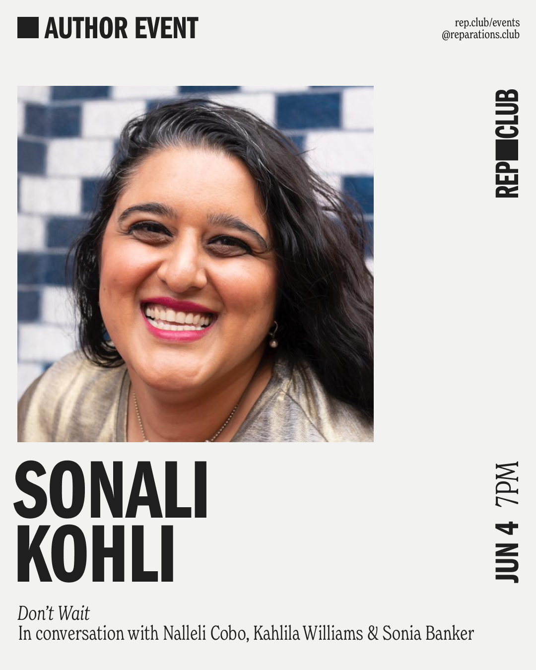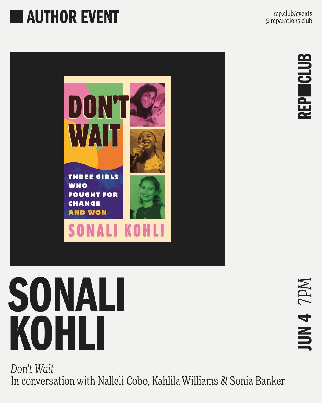 WHO & WHAT: Join us for an IRL EVENT with journalist, Sonali Kohli as we celebrate her debut collection of stories, Don't Wait, which highlights Sonia Banker, Nalleli Cobo, + Kahlila Williams. Sonali will be joined in conversation with these three young women activists of color who are fighting for some of today's most pressing movements.