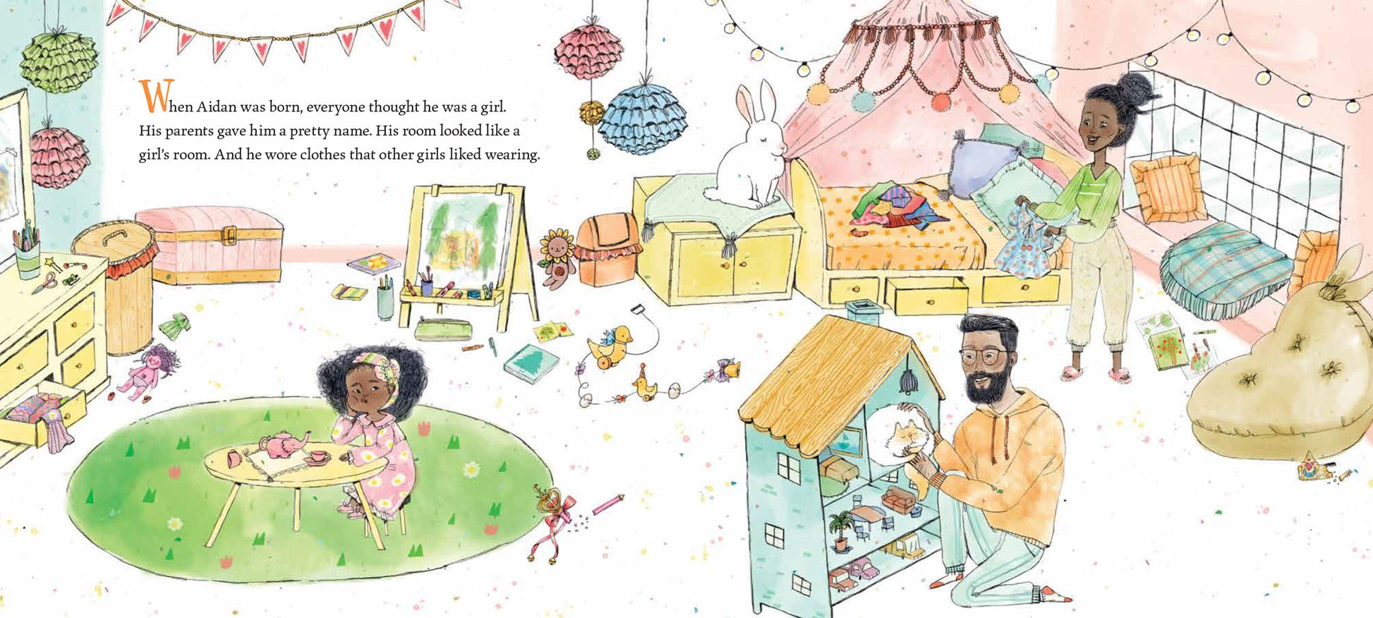 When Aidan was born, everyone thought he was a girl. His parents gave him a pretty name, his room looked like a girl's room, and he wore clothes that other girls liked wearing. After he realized he was a trans boy, Aidan and his parents fixed the parts of life that didn't fit anymore, and he settled happily into his new life.