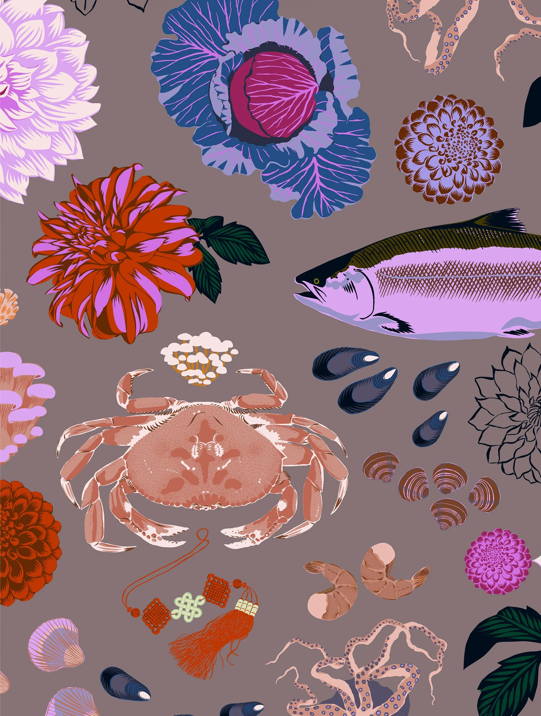 In Kate Blairstone’s naturalist illustrations, maximalism meets modern styling, with flora and fauna juxtaposed against unexpected colorways and purposeful asymmetry. “I usually start out with a realistic color portrayal, and then stray from there,” Blairstone says. She studied printmaking during college and by her 30s had developed her signature style while creating bespoke designs for clients seeking something different. Inspired by the rich history of surface design, she renders the familiar fresh.