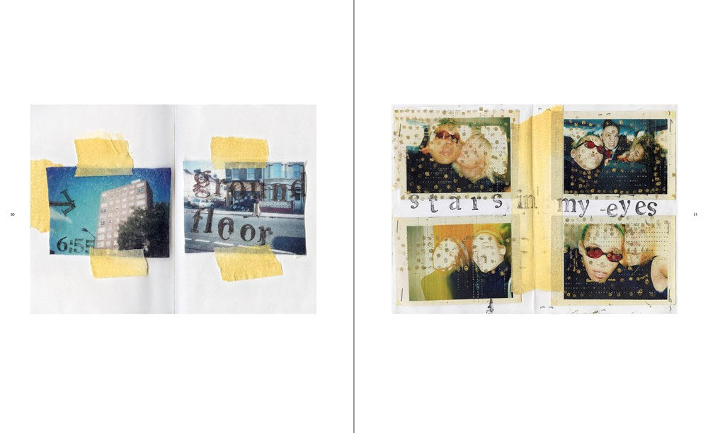 Each page is a tactile surface, combining photographic prints on canvas, tracing paper, faxes, and photo stock with screen-prints, handwriting, and clipped texts. The result is a sensorial, intimate archive of moments lived and witnessed - of friends, family, strangers, lovers - held with care and attention.