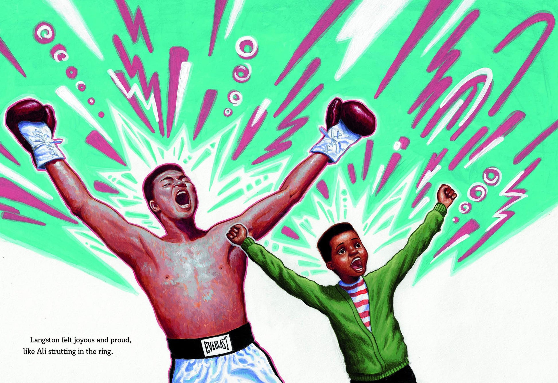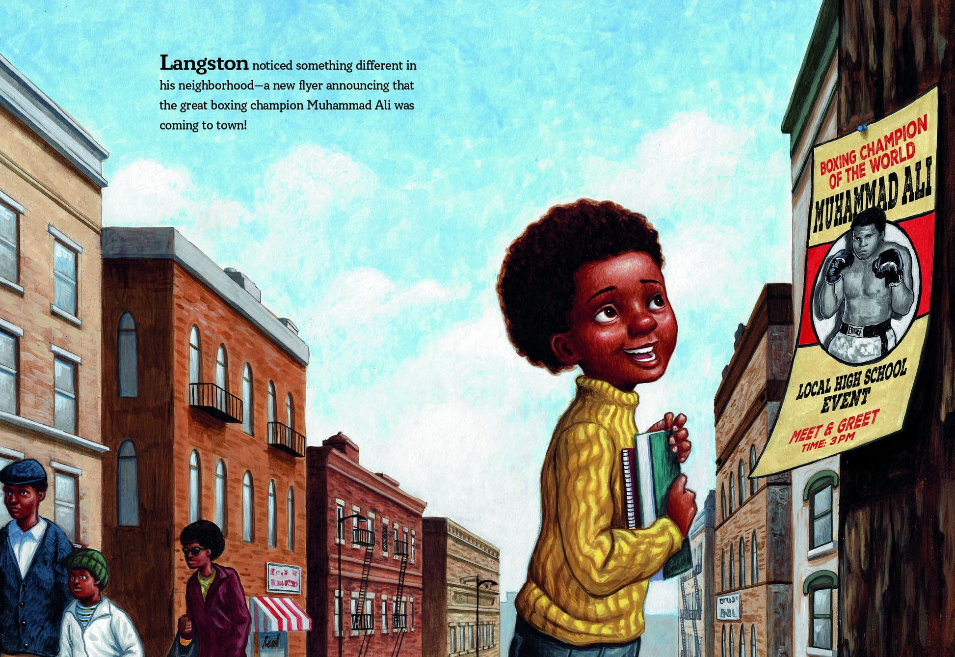 Like most of the kids he knows, Langston is a huge fan of boxing champ Muhammed Ali. After all, Ali is the greatest for so many reasons--his speed, his strength, his confidence--and his poetry. Langston loves that Ali can float like a butterfly and sting like a bee, and Ali's words give him confidence to spin his own poems. When Langston hears the champ is coming to the local high school, he's ecstatic--this will be a day that will go down in history for him. When the big day arrives, Langston gets a special haircut, and floats like a butterfly to meet his hero--so imagine his disappointment when a guard tries to stop him at the door, saying the event is just for students. Fortunately, Langston has learned a thing or two about fearlessness from the champ and is quick about not taking "no" for an answer. And just like that, a dream comes true for Langston that leaves him feeling wrapped in a warm glow and chanting I'm quick and I'm strong. I'm Black and I'm free. I'm brave and I'm bold, like Muhammad Ali!
