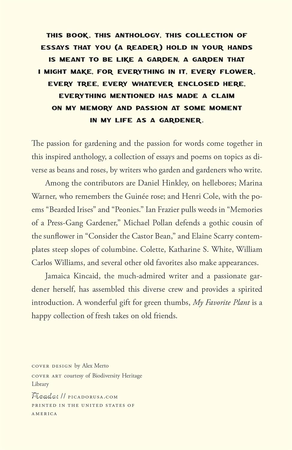 Jamaica Kincaid, the much admired writer and a passionate gardener herself, has assembled this diverse crew and provides a spirited introduction. A wonderful gift for green thumbs, My Favorite Plant is a happy collection of fresh takes on old friends.