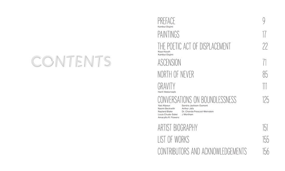 Through an exploration of weightlessness, Olujimi contests the fixed and singular ideas of Blackness as ascribed within persisting colonial imaginations. North Star brings together over five years of Olujimi's artwork, including large-scale watercolor paintings, video installation, ceramic sculpture, a short film and excerpts from a two-day symposium commissioned by Lincoln Center for Performing Arts. Presented in this full color monograph, these works collectively imagine what new relationships we might chart between our bodies, the self and the universe, once deeply entrenched forces are replaced by boundlessness and possibility. This book was made possible through the generous support of the Mellon Foundation.