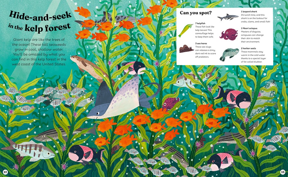 Will they be able to spot the sea turtle hatchlings making a dash for the sea? Or the nurse shark having a snooze in the coral reef? How about the narwhals peeking through ice in the Arctic? Kids will also learn that epaulette sharks can "walk", how a rainbow sea slug defends itself against predators, and why honeycomb eels have two sets of jaws!