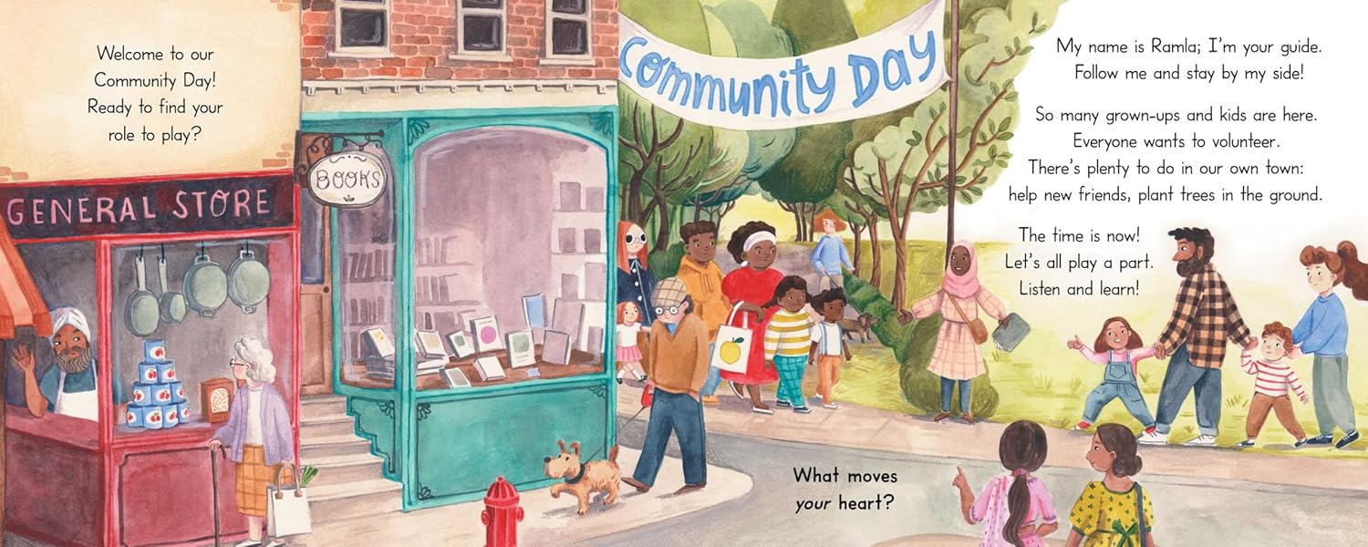 It's Community Day in a close-knit, diverse neighborhood, and everybody is pitching in to help one another. All the kids want to know where they fit in. Could they be builders, restoring old furniture for new neighbors? Caregivers, nurturing friends who are sad or lonely? Frontline responders, preparing for emergencies?
